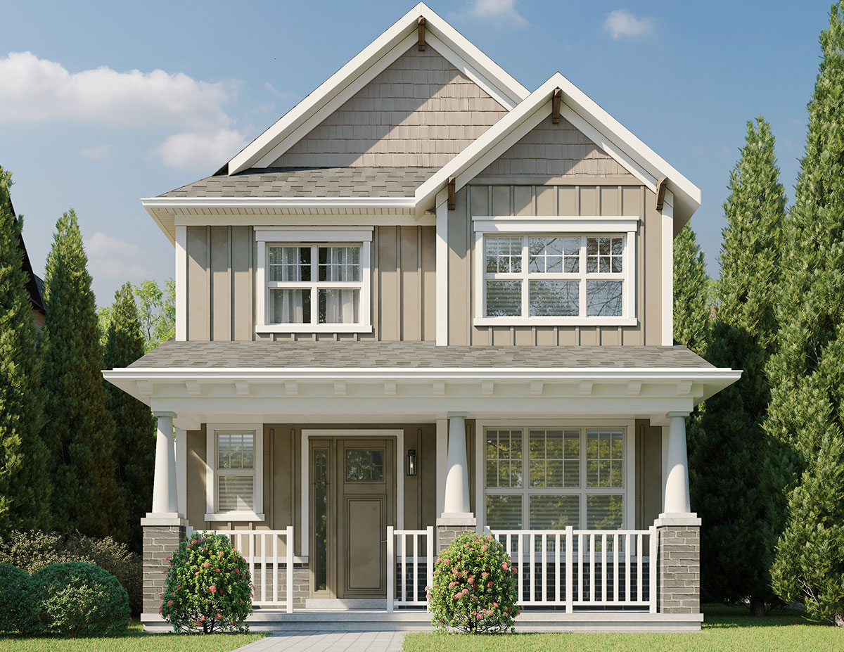 The floor plans and elevations shown are pre-construction plans and may be revised or improved as necessitated by architectural controls and the construction process. The measurements adhere to the rules and regulations of the TARION Warranty Corporation's official method for the calculation of floor area. Actual usable floor space may vary from the stated floor area. Railings on front porch only where required by O.B.C. All inside coffered celling and heights are approxiamate. All images and landscaping are artist's concept only and not indicative of what purchaser is actually getting. E. & O. E. December 2025 Rose